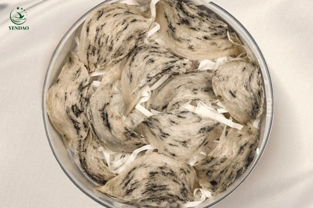 The average weight of each nest varies depending on whether it is raw, semi-processed, or refined. For example, with raw bird’s nest (uncleaned, with feathers), the average weight of each nest ranges from 4–8 g. Therefore, to make up 1 kg, you would need about 100–200 nests. This is quite a large number, usually suitable for wholesale buyers who resell. For retail customers, buying such a large quantity would require significant time to clean the feathers before cooking.