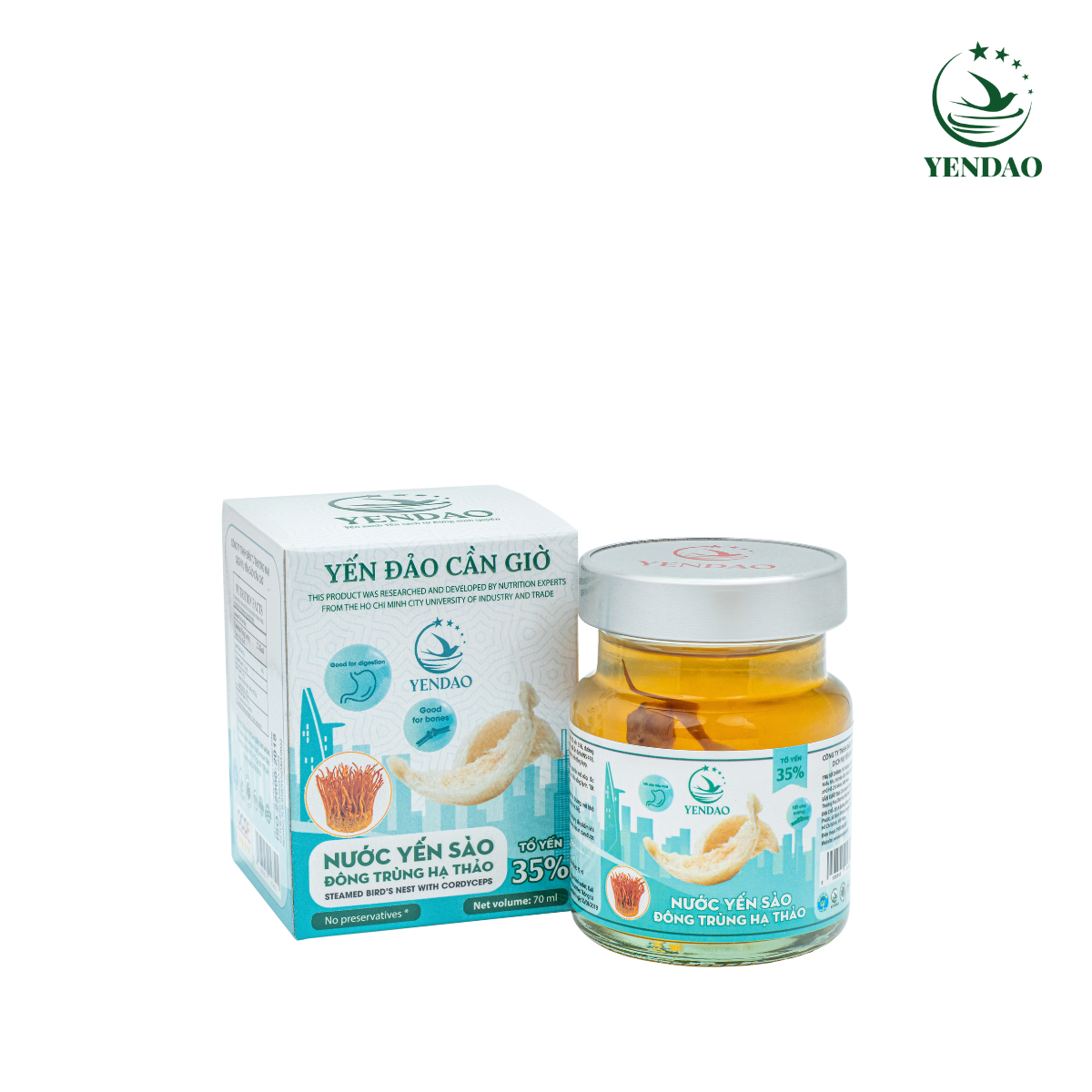 With the dedication to providing domestic and international consumers with the highest-quality, cleanest bird’s nest products sourced from the biosphere forest of Ho Chi Minh City, Yen Dao Can Gio has launched the 35% Cordyceps Bird’s Nest Drink. Cordyceps is highly valued for boosting immunity and enhancing the body’s ability to prevent infectious and respiratory diseases. The 35% Cordyceps Bird’s Nest Drink is a combination of this precious medicinal herb with nutritious bird’s nest, traditionally regarded as a valuable tonic that supports overall health.